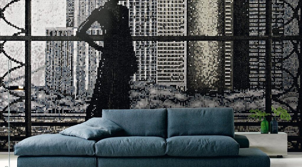Le superfici in mosaico contemporaneo, coniugando l’esperienza artigianale con l’innovazione della lavorazione dei materiali, permettono di creare infinite combinazioni di colori e riflessi, effetti di profondità, di motivi decorativi e grafici, trasformando anche una semplice stanza in un’opera d’arte.